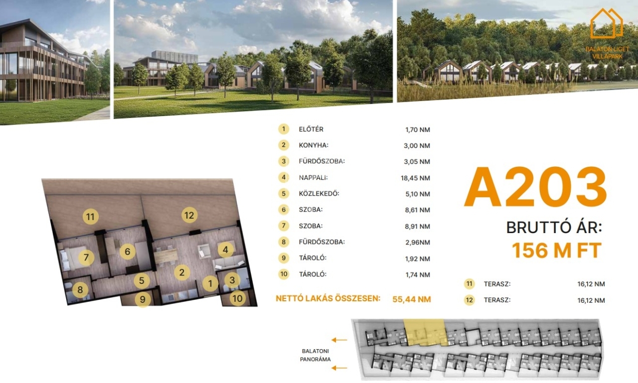 | 55 m2Alapterület | 1 + 2 Szoba |