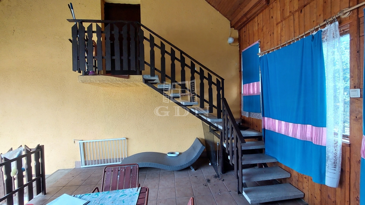 A főépület földszintje barátságos, élhető terekkel várja új tulajdonosát: két szoba, egy tágas nappali-étkező-konyha, fürdőszoba és külön WC kapott helyet. A nappali meleg hangulatáról télen gázkandalló gondoskodik. Az egész ház előtt végighúzódó, 24 m²-es fedett tornác ideális helyszíne lehet a reggeli kávéknak vagy a nyári beszélgetéseknek.