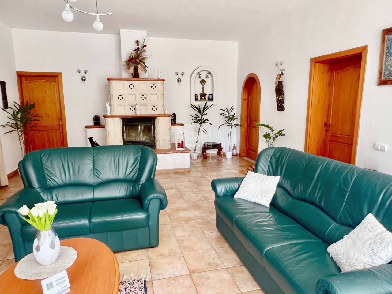 A ház két klímaberendezéssel felszerelt, fűtése modern pelletkazánnal történik, emellett gázcsatlakozás is rendelkezésre áll.