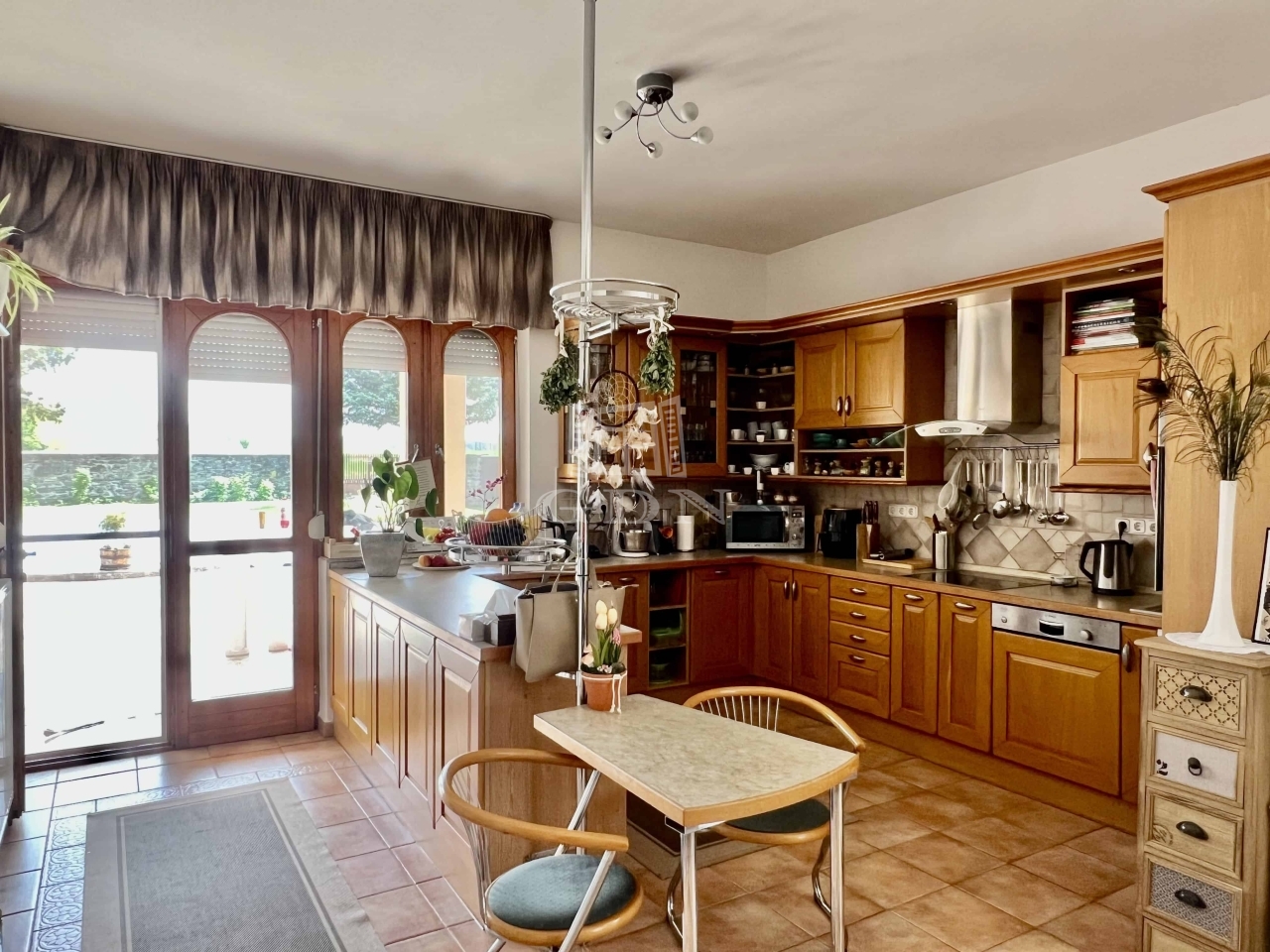 Az alaprajz átgondolt és praktikus elrendezést biztosít. A ház központi része egy tágas nappali étkezővel, amely közvetlen kapcsolatot biztosít a lakótér több helyiségéhez. Innen nyílik többek között egy különálló konyha, kamrával kiegészítve. Több szoba áll rendelkezésre, amelyek hálószobaként, vendégszobaként vagy dolgozószobaként is használhatók.