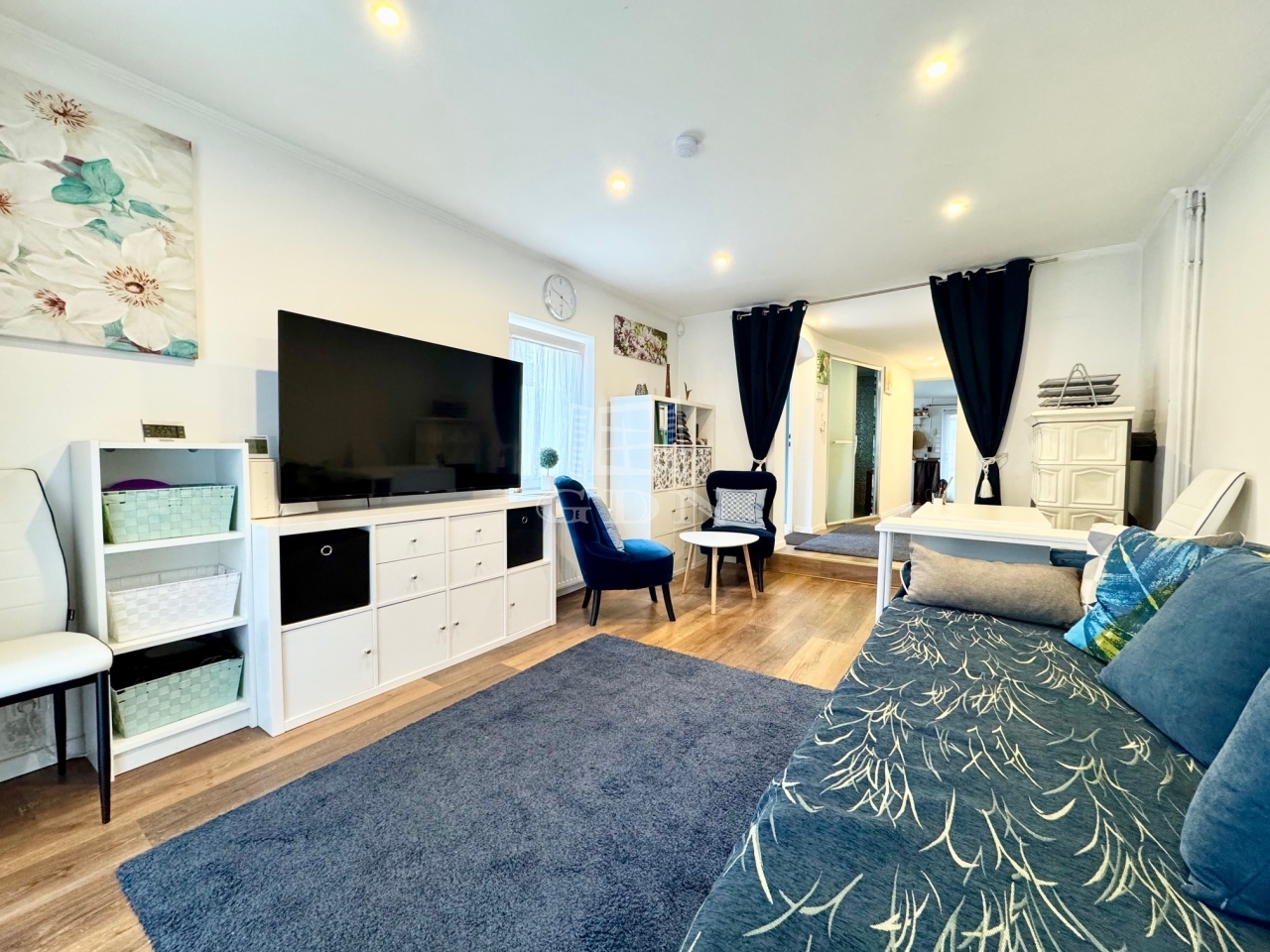 Karnyújtásnyira Bp III. kerületétől, Budakalász üdülőövezetében, (Üh-H) csendes aszfaltozott mellékutcában, közvetlen Dunaparti, 720 nm-es telken 1980-as években, tégla falazattall épült, körbejárható, kétszintes, 72 nm-es hasznos lakóterületű,(alapterület 42 nm) 2 szobás, étkező konyhás, dupla teraszos, (20+50nm) elektromos cirkó fűtésű, napos-világos fekvésű (É-K-D-NY), alacsony fenntartású, 2020-ban, teljes körűen, magas műszaki szinvonalon felújított, szigetelt, klimatizált családi/ház/nyaraló, beépített, gépesített konyhával, 17 nm-es igényesen kialakított, fűthető és zárható téli kerttel, elektromos redőnyökkel, 50 nm-es kerti tárolóval, fúrt kúttal, gondozott kerttel eladó.
