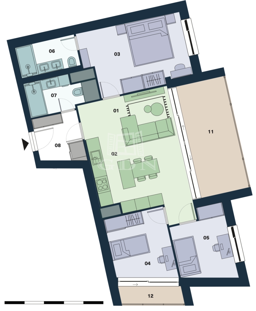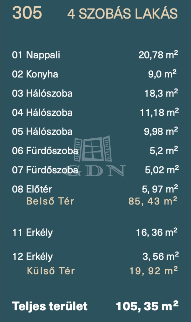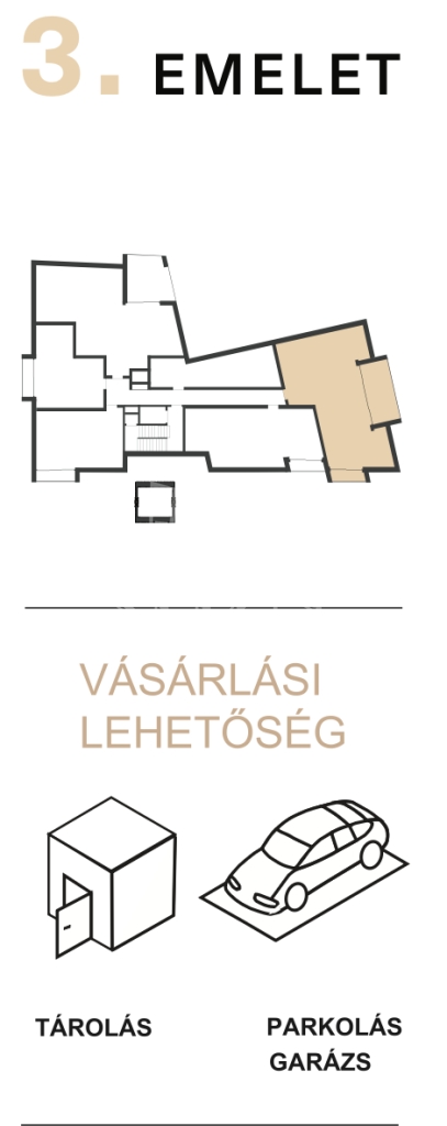 A 6 emeletes társasház 3. emeletén található ez a piacon hiánypótló három hálószobás dupla komfortos, városi panorámás ingatlan. A központi tér a közel 30m2-es konyha -nappali melynek nyugati frontján egy összefüggő üvegfelület, nagy toló ajtókkal határolja a 16m2-es terasztól mely tavasztól, őszig a nappali kiterjesztése. A nyugati benapozásnak köszönhetően napfürdőzhetnek a leendő lakók, az alapterület üvegfelület aránynak köszönhetően pedig télen nyáron nagyon világos, mint egy igazi műterem lakás. A fő háló, mely fürdőszoba kapcsolatos az átgondolt tervezésnek köszönhetően nagyszerűen elkülönül a második, illetve harmadik hálószobától.