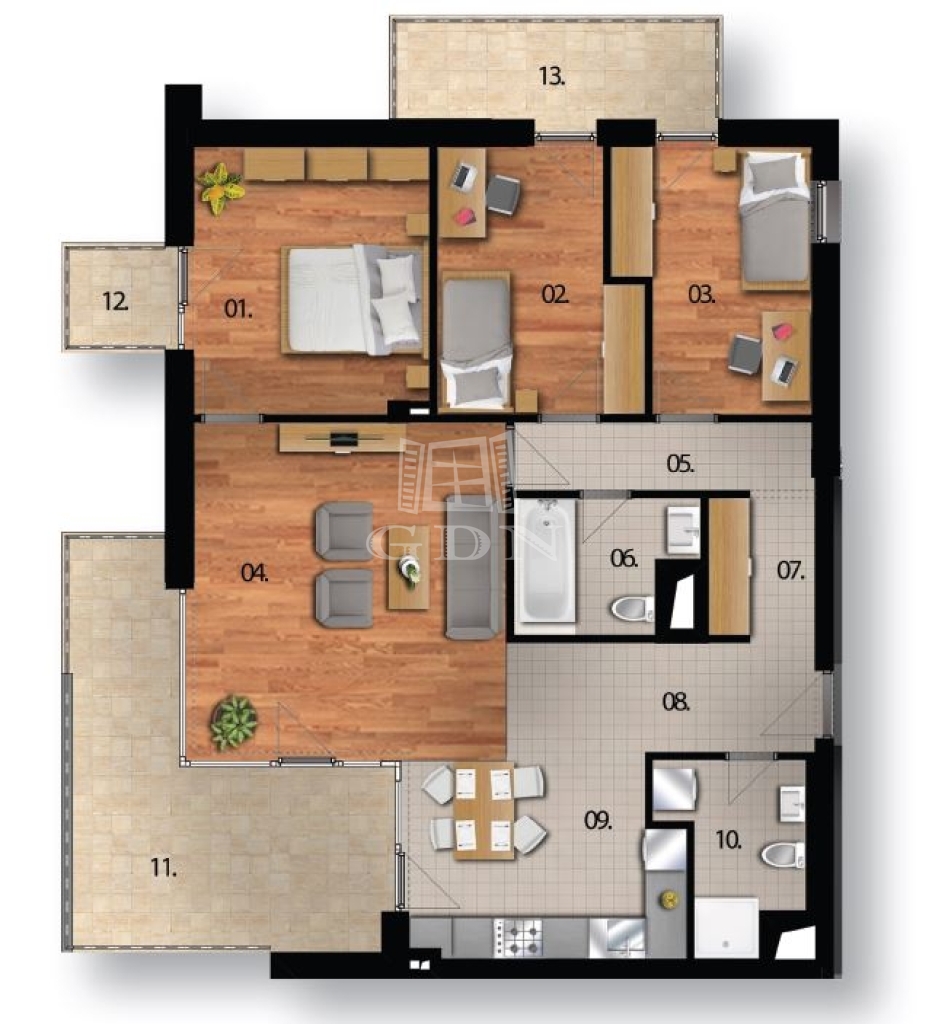 szobák - 13, 10.5 és 10 nm-esek