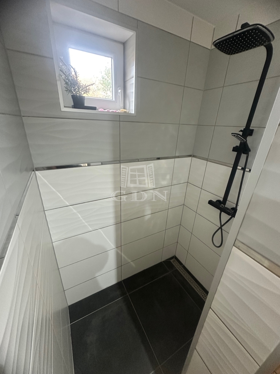 Mindkét szinten külön fürdőszoba található, saját bojlerrel, így a melegvíz-ellátás mindig zavartalan. A földszinti fürdőben kád és épített zuhanyzó is helyet kapott, míg az emeleten egy modern zuhanyzós kialakítás várja az ott lakókat.