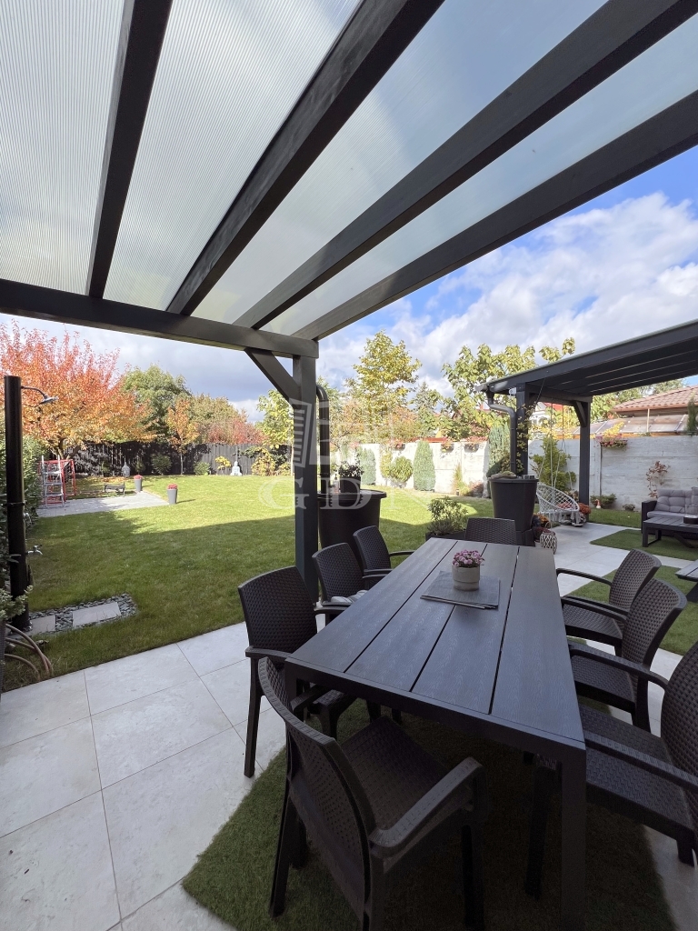- Nagy terasz fedett részekkel, gyönyörűen parkosított kert