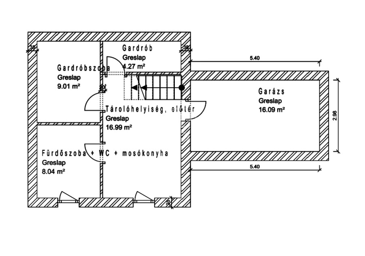 Pince (54 m²): garázs, gardrób, mosókonyha, tároló