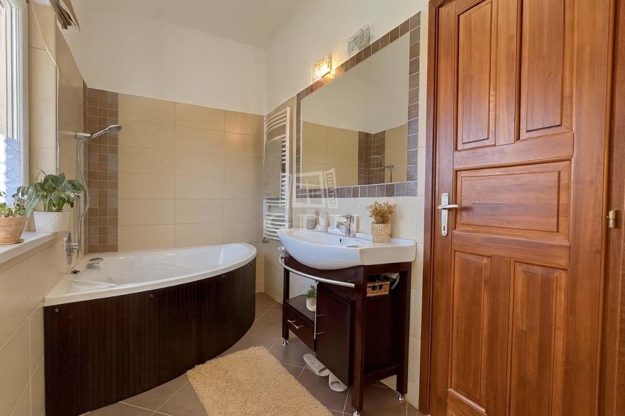 Mindebből 38 m² tágas gardrób, mosókonyha, tároló, amely akár edzőtermi, wellness funkcióvá is alakítható , 16 m² fűtött garázs , vizes-kiállással, töltési lehetőséggel + udvari beálló.