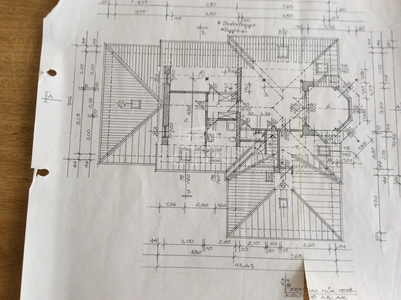 Emelet: nagy nappali, 3 szoba és egy fürdőszoba.