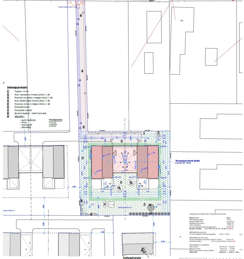 Tervezett lakóépület beépített alapterülete: 264,67 m2