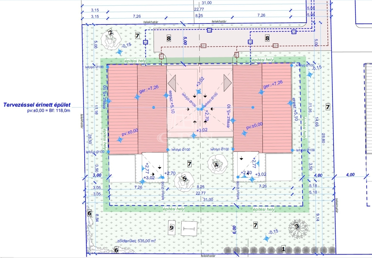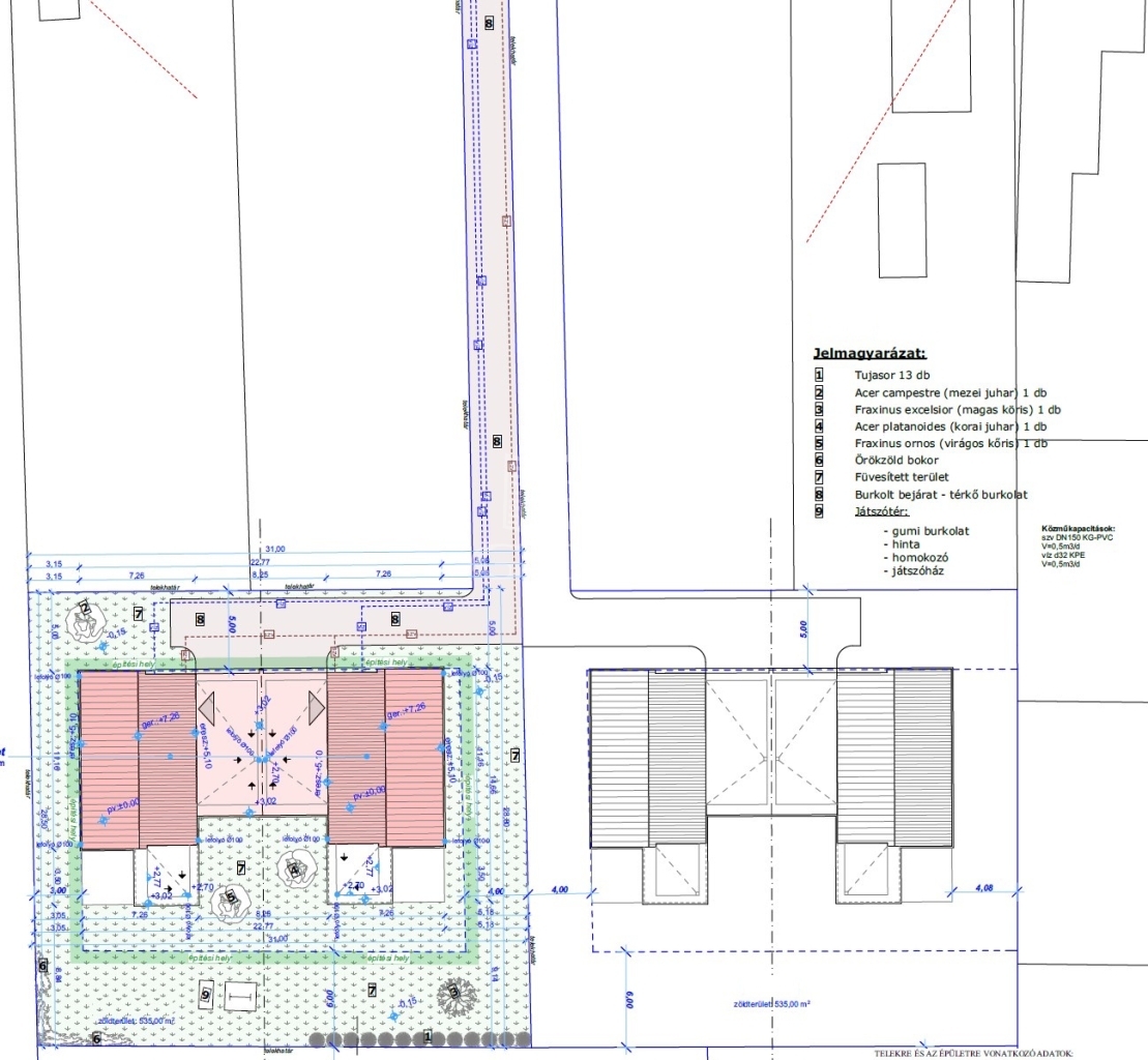 Igény szerint komplett engedélyeztetett tervekkel 2 db. ikerház megépítésére, összesen 4 db. lakásra!
