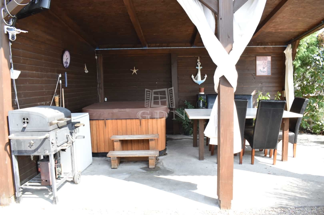 klímaberendezés, automata redőnyök, távirányítású kert- és garázskapu, valamint egy wellnessrészleg fedett terasszal az udvarban. Itt egy 125 cm mély, 3 méter hosszú, LED világítással ellátott medence, jacuzzi és grillezési lehetőség is rendelkezésre áll.