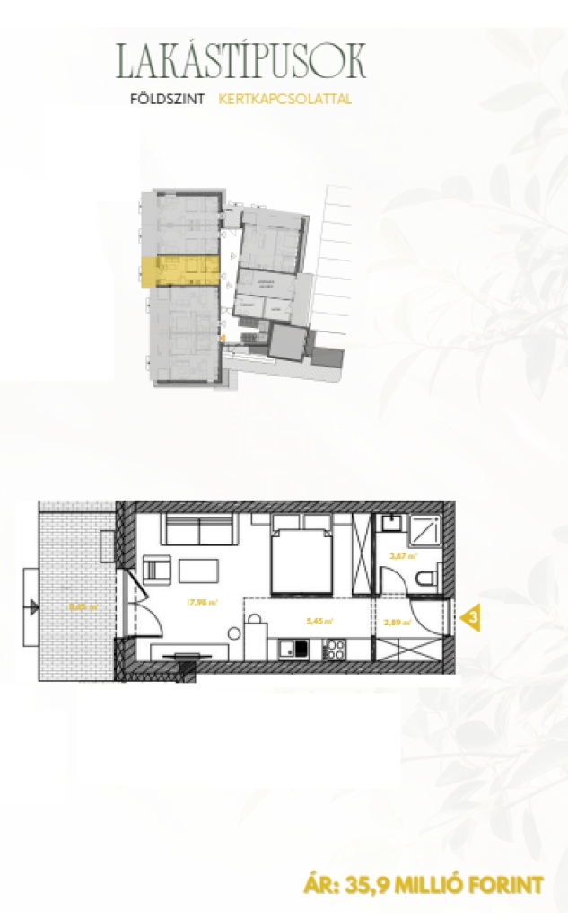 A 3 szintes lakóépület földszintjén, illetve első és második emeletén további lakások helyezkednek el, melyek 29, 30, 39, 40 és 46 m2 alapterületűek.