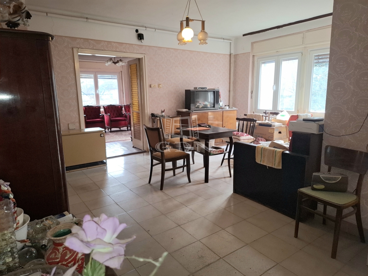 Az épület helyiségei: előtér, étkező/nappali, 2 lakószoba, konyha, közlekedő, fürdőszoba, wc, kamra.
