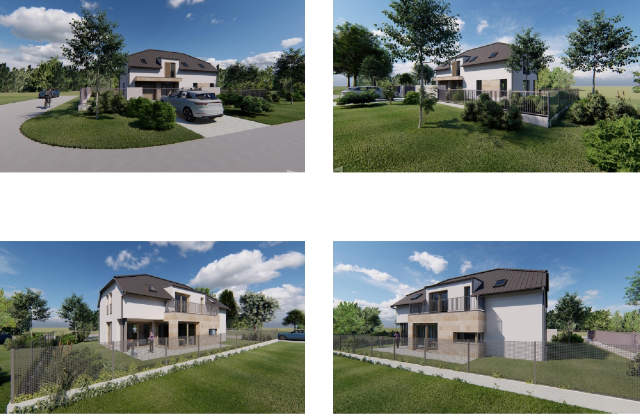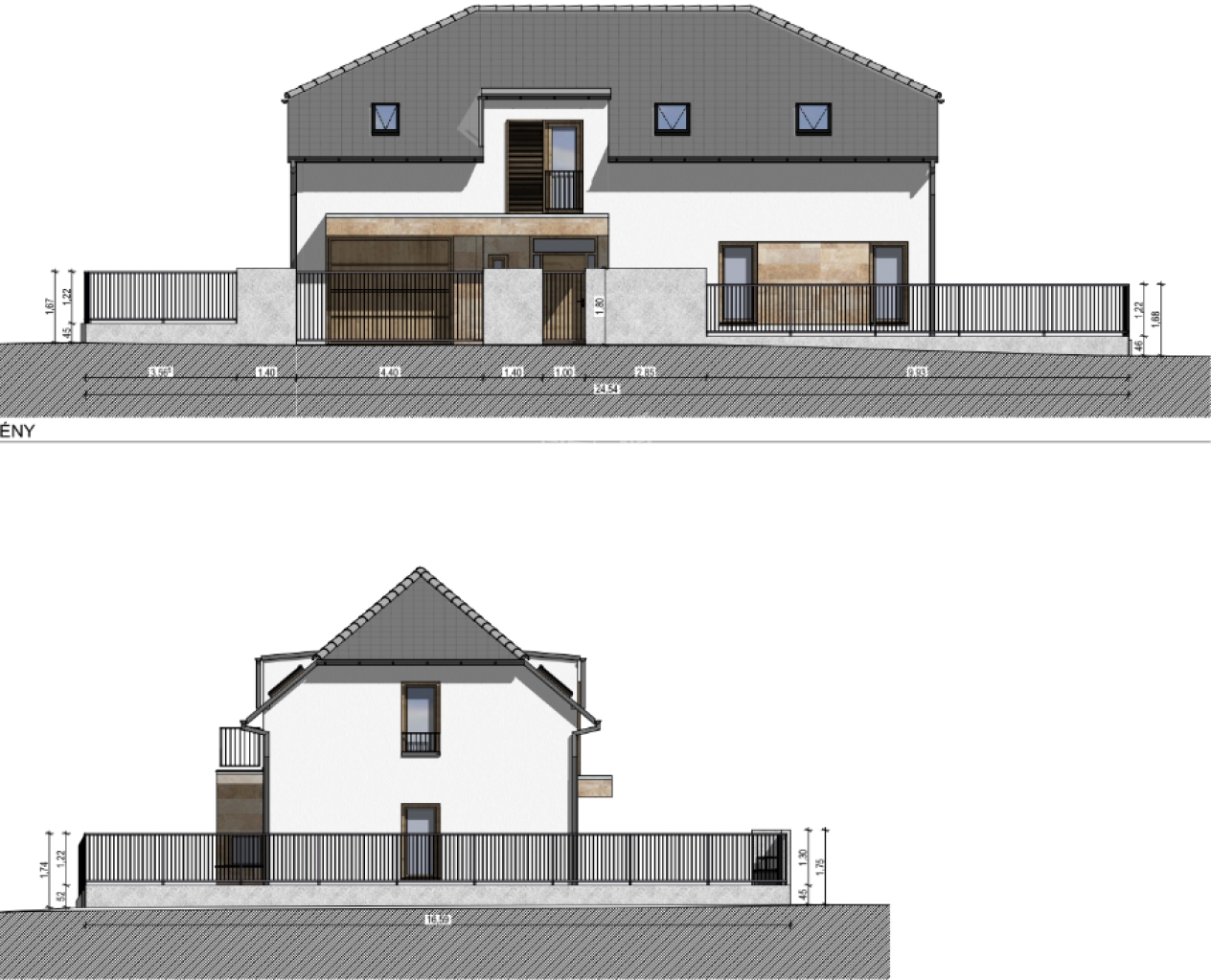A tető Terrán Zenit Max cserépfedést kap elegáns Moon szürke színben. A nyílászárók korszerű, háromrétegű hőszigetelt üvegezésű, fenyő színű műanyag szerkezetek, többpontos biztonsági bejárati ajtóval.