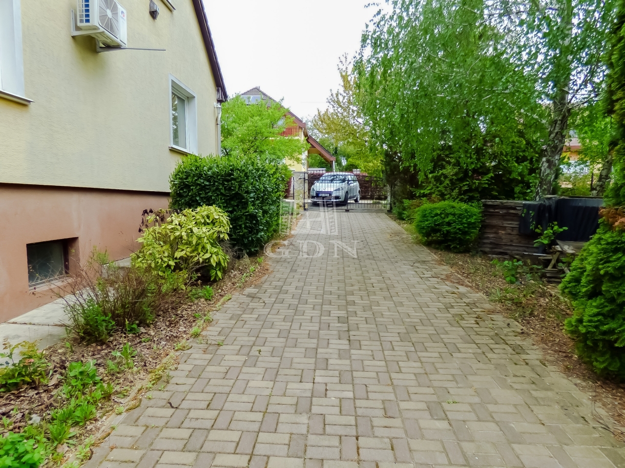A fedett felszíni beálló és egy autó számára épült GARÁZS elektromos kapun keresztül közelíthető meg, viakolor borítású, továbbá a zárt udvaron belül cca. 4-5 autó is elfér.