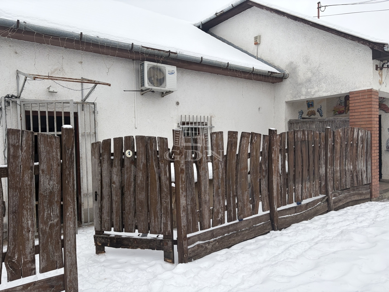A ház elkőkertet követően helyezkedik el a telken, majd mögötte egy tégla szerkezetű kb 15 nm nagyságú tároló található, amely mellett 6 autó beállására alkalmas udvar fekszik. A terület rendezett, körbekerített.
