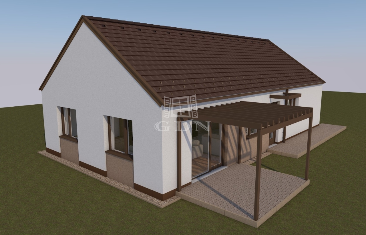 A ház tágas, világos, minőségi anyagokból készült. A ház szerkezete Porotherm tégla kívülről 20 cm szigeteléssel nemesvakolattal. A födém külső borítás cseréppel (BRAMAC) készül alatta a megfelelő vastagságú fóliázattal.