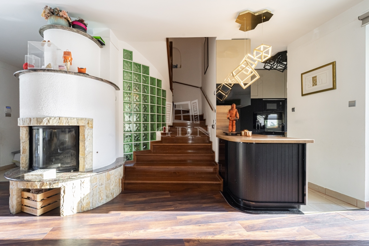 A ház különlegessége a saját wellness szint, ahol egy szauna, jakuzzi és sófallal ellátott pihenőtér is helyet kapott – tökéletes kikapcsolódás az év bármely napján. Emellett összesen 5 szoba és 4 fürdőszoba szolgálja a kényelmet, köztük egy teljes szülői lakrész panorámás terasszal.