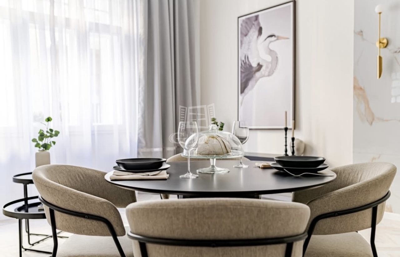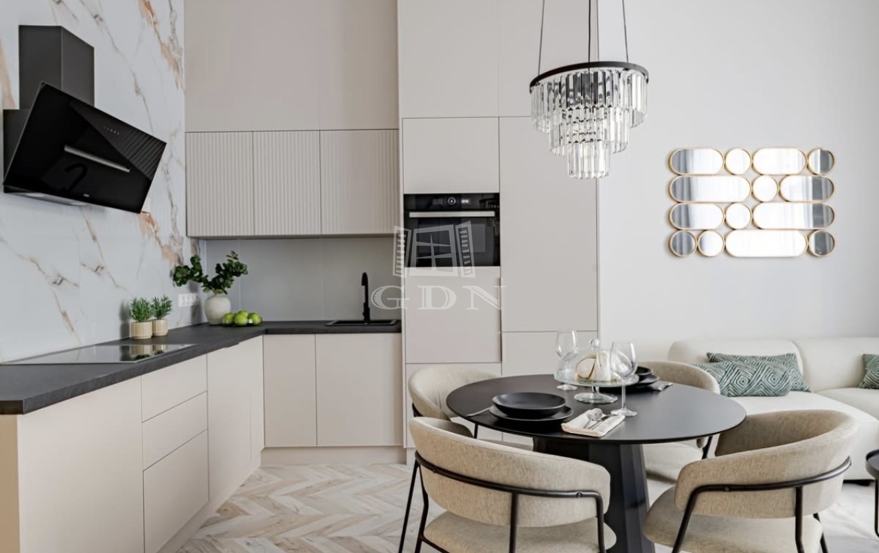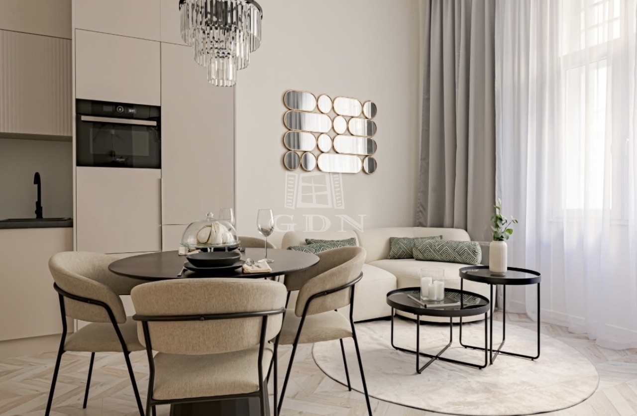 A tágas nappali, az elegáns hálószoba, a külön walk-in gardrób, valamint a modern, prémium anyagokkal kialakított konyha és fürdőszoba együtt teremtik meg a letisztult luxus atmoszféráját.