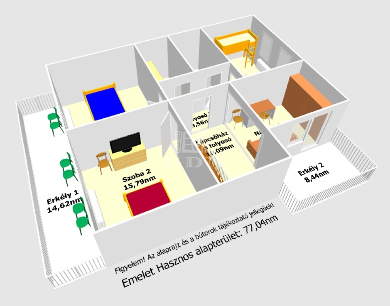 - az emelet hasznos alapterülete: 77,04nm,
