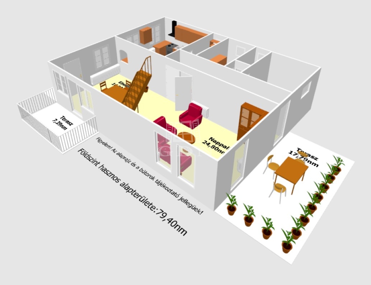 - a földszint hasznos alapterülete: 79,40nm,