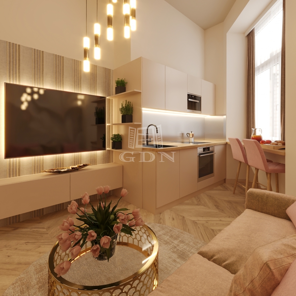 For sale in one of the city center’s liveliest yet most livable neighborhoods, in Klauzál Street, is a 24-square-meter, 1.5-bedroom, fully renovated apartment that is surprisingly well-utilized and cozy for its size.