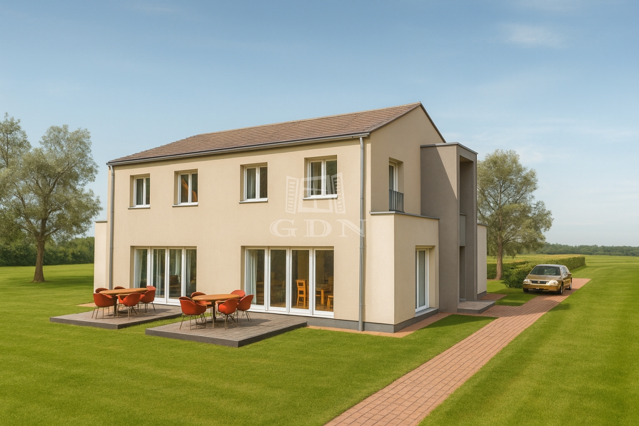Telek: 1300 m² összesen (lakásonként min. 400 m² saját, leválasztott rész)