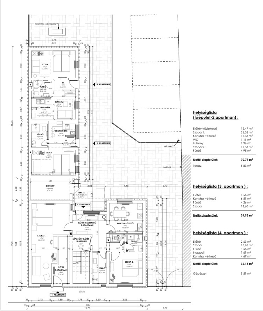 Szálláskapacitás 14 + 2 fő, összesen 4 db apartmanban.