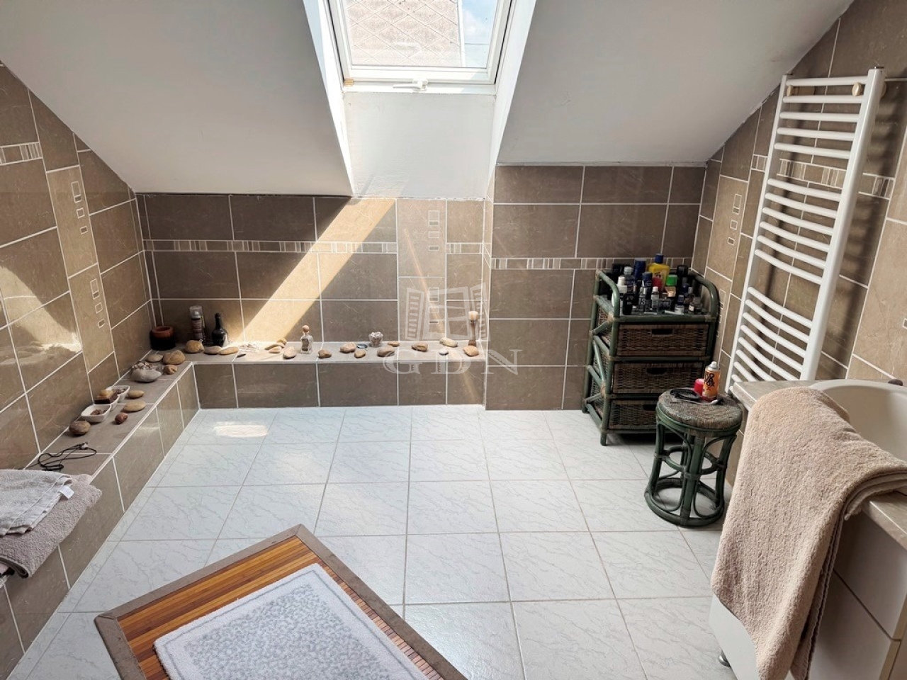 tetőtér: szoba 16,04m2, szoba 14,02m2, gardrób 9,29m2, előtér 9,33m2, fürdőszoba 5,75m2, toalett-bidével 1,82m2, szoba 8m2, szoba 7,57m2;