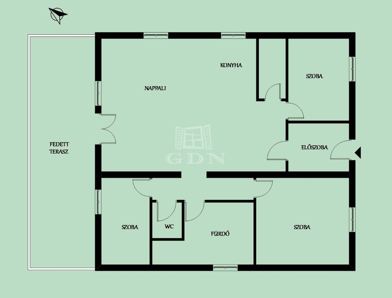 - Nyílászárók: 3 rétegű üvegezés, szúnyoghálóval és elektromos redőnyökkel