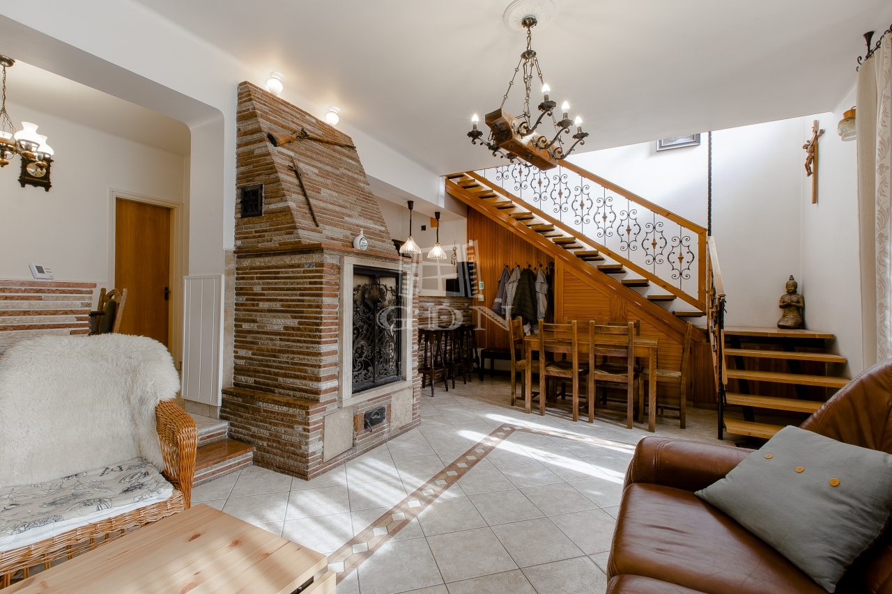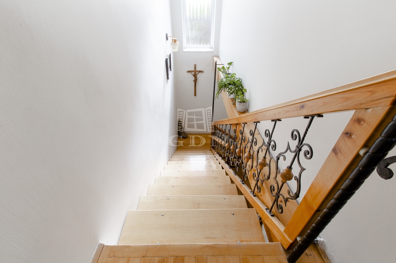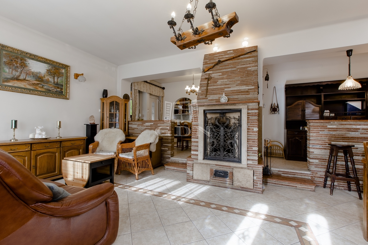 - Földszint: tágas nappali működő rusztikus kandallóval, étkező, konyha, fürdő, külön WC, műhely, garázs és pincelejáró.