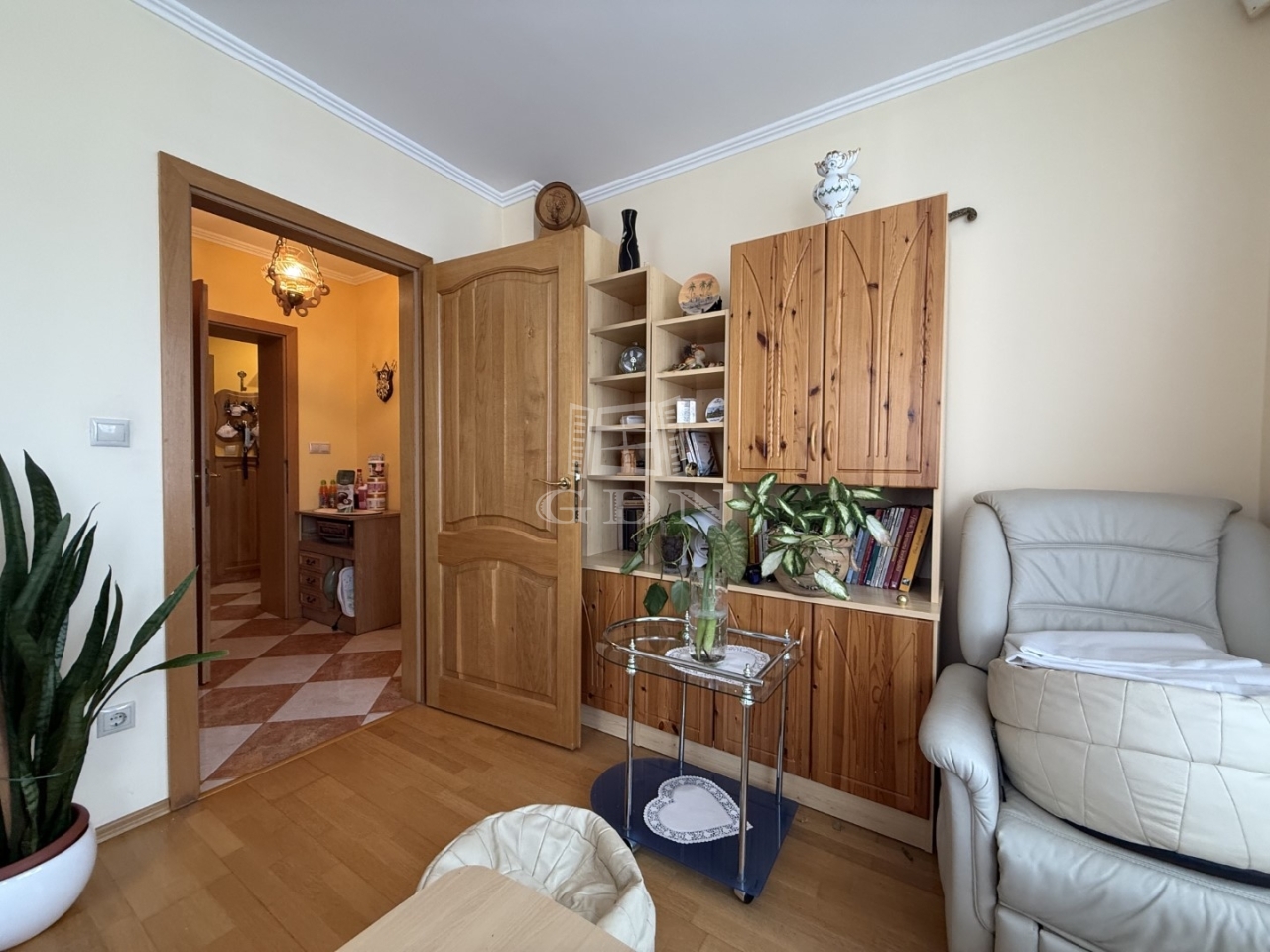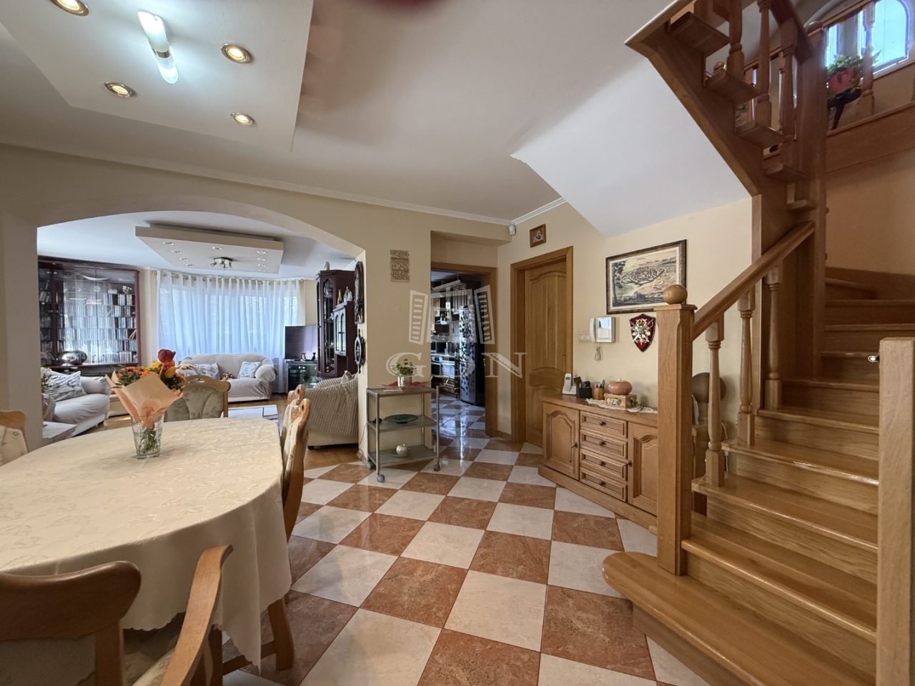 Földszint : Az előtér a ház központi terébe nyílik, a bejárati ajtótól jobbra egy- akár külön választható lakrészként- 1 hálószoba, előszoba, fürdő wc-vel helyezkedik el, közvetlen bejutással a minden funkcióval felszerelt konyhába. A bejárati ajtótól balra van a garázs (külön bejárattal), és az előszobából balra egy kamra. A bejárati ajtóval szemben az előszobából az étkezőbe jutunk , itt található még a földszinten egy tágas világos nappali, 1 gardrób, egy fürdő wc-vel, szaunával, háztartásihelyiség, vendég wc, és egy hálószoba.