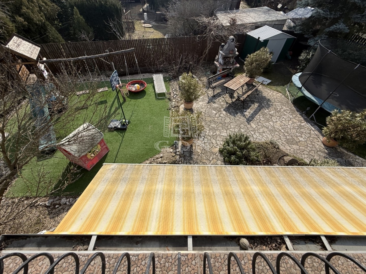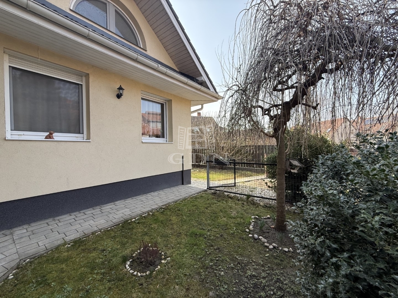 A kert szépen gondozott, parkosított. A hátsó telekrészen került kialakításra egy melléképület, kerti sütögető, gyermekjátszótér…..