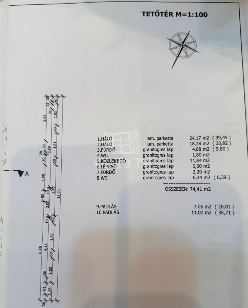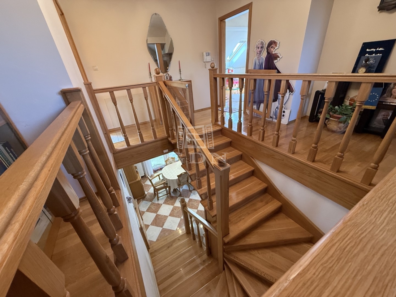 Tetőtér : A központi lépcsőn keresztül közelíthető meg. Itt helyezkednek el a további hálószobák, 2 hálószoba saját fürdőszobával, és gardróbbal rendelkezik.. A galéria másik feléről közelíthető meg a jelenleg tároló/ vendégszobaként funkcionáló + még 2 szoba.