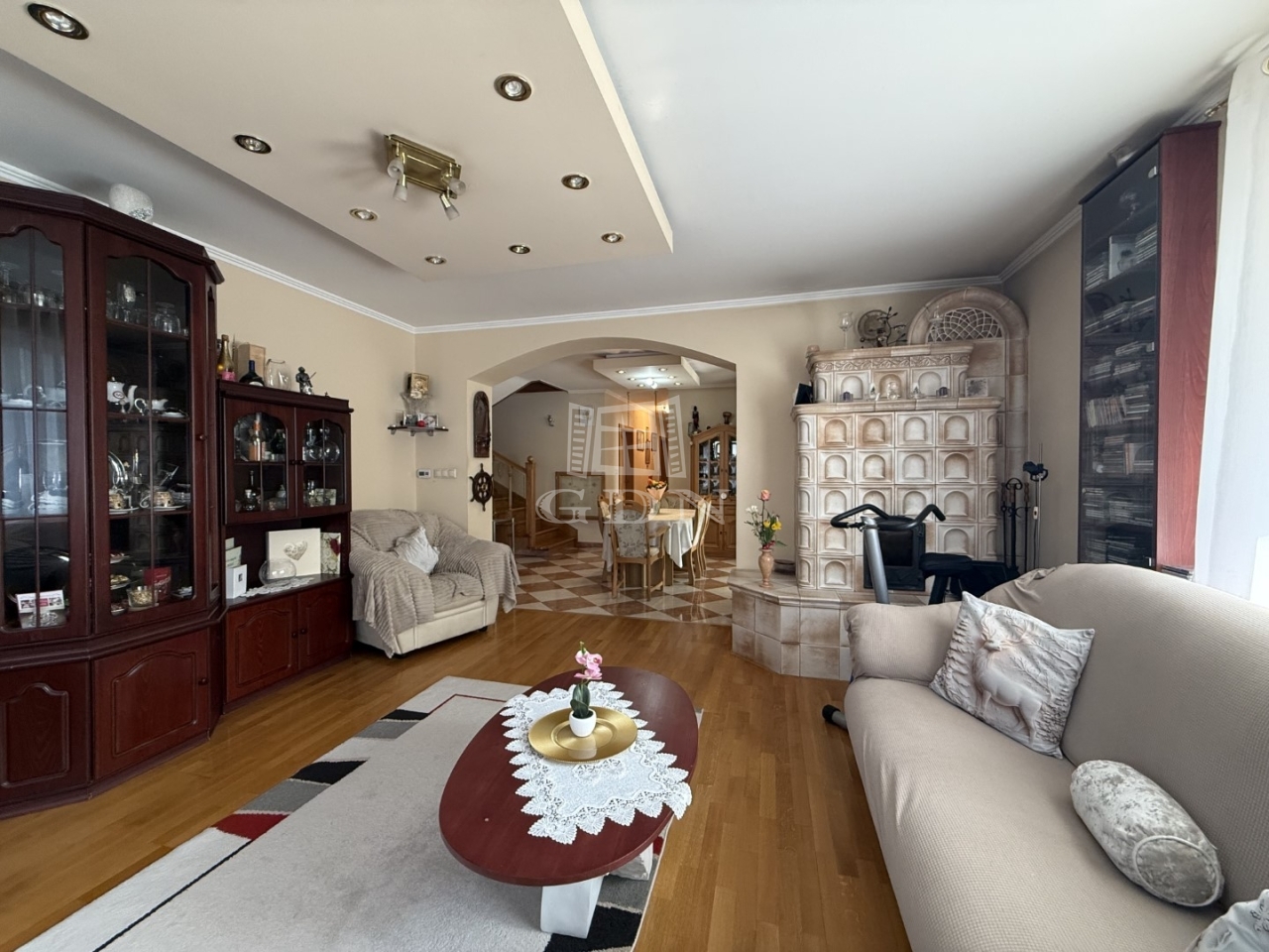 Az 803 m2-es önálló összközműves telken elhelyezkedő ingatlan 2004-ben épült, Porotherm téglából. Fűtése gázkazán radiátoros hőleadással. Nagy teljesítményű klímarendszerrel. Másodlagos fűtésnek a nappali közepén egy impozáns méretű cserépkályha található. Vastag falaknak köszönhetően a rezsiköltsége alacsony. A burkolatok magas minőségű kő és laminált padlóburkolat, mely az egész házat egyedivé teszi.