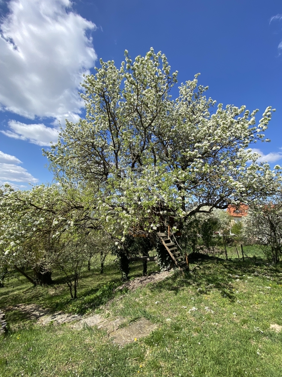 A 1730 m²-es, gyönyörű, teljesen beérett kertben közel 70 fa, rengeteg termő gyümölcs, egy romantikus borospince és a gyerekek kedvence, egy fára épített kuckó várja új tulajdonosát.
