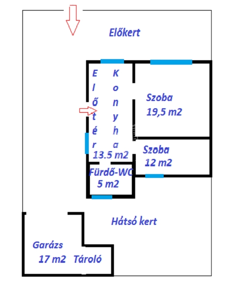 A ház osztatlan közös telken, kb: 150 m2, teljesen leválasztott, elkerített, elő és hátsó kertes, ügyvéd általi használati megosztással rendelkezik.