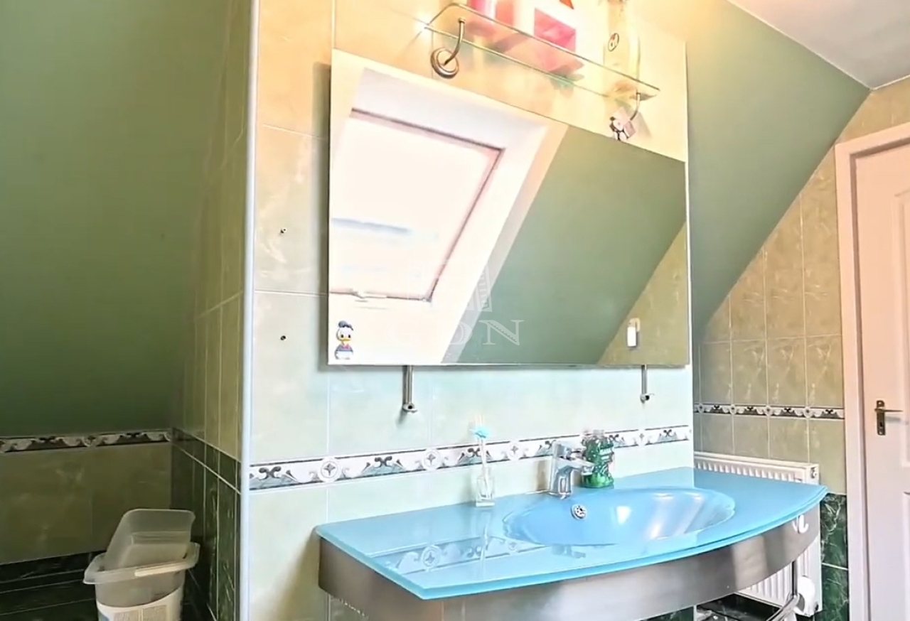 Eladó a Pest megyei Gyömrőn egy 455m2 telken téglából épült tetőtér beépítéses 157 m2 5 szobás,3 fürdőszobás családiház.