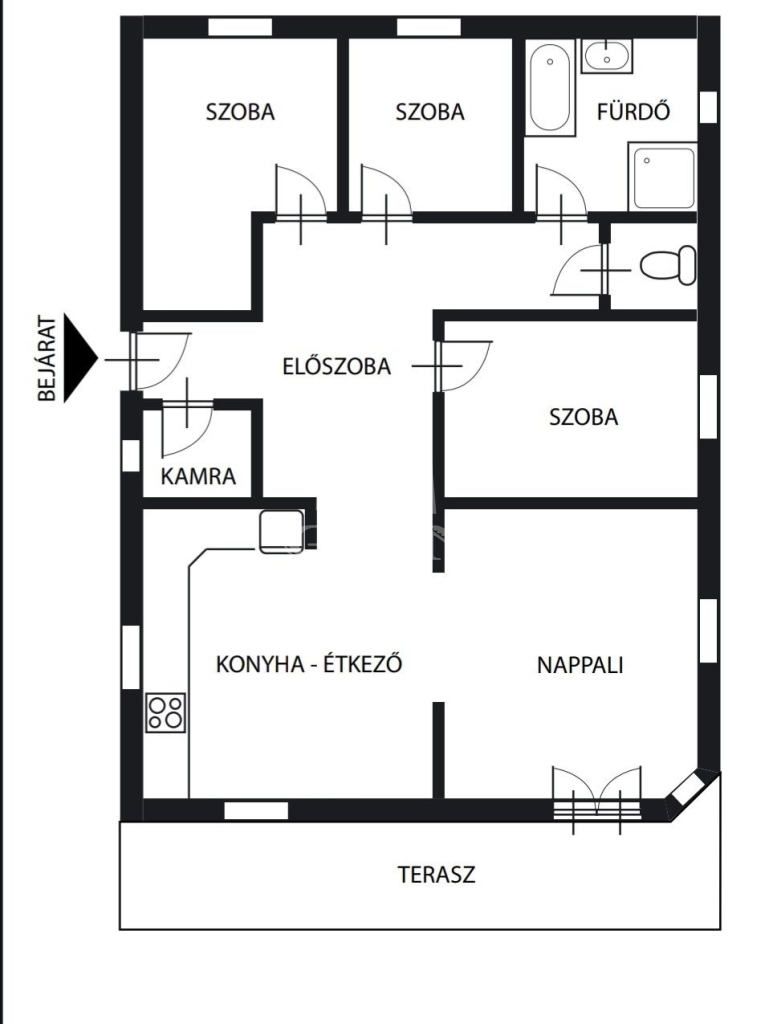A belső tér középpontja a világos, amerikai konyhás nappali, ahol együtt zajlik az élet. A 3 különnyíló szoba jól használható, élhető teret ad, nincs felesleges kompromisszum.