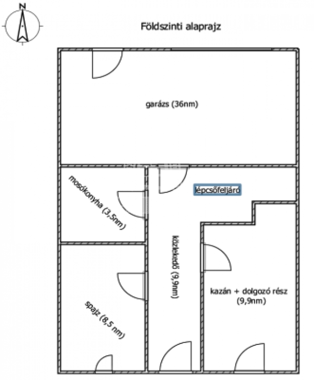 - kazánhelyiség (a helyiség méretei és világos ablakkal rendelkező adottsága miatt egy külön dolgozó szoba is itt kapott helyet),