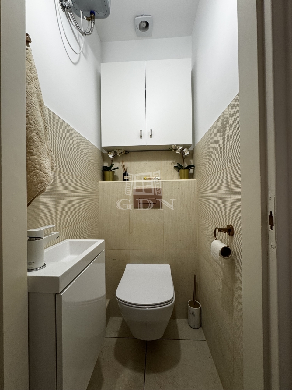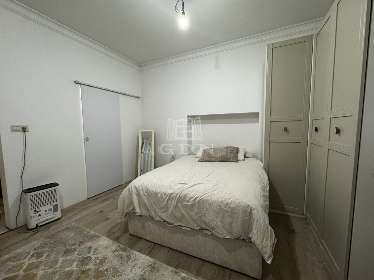 A fűtésről gázkonvektor és az álmennyezetre szerelt infrapanel gondoskodik, így a lakásban kettős fűtési lehetőség biztosított.