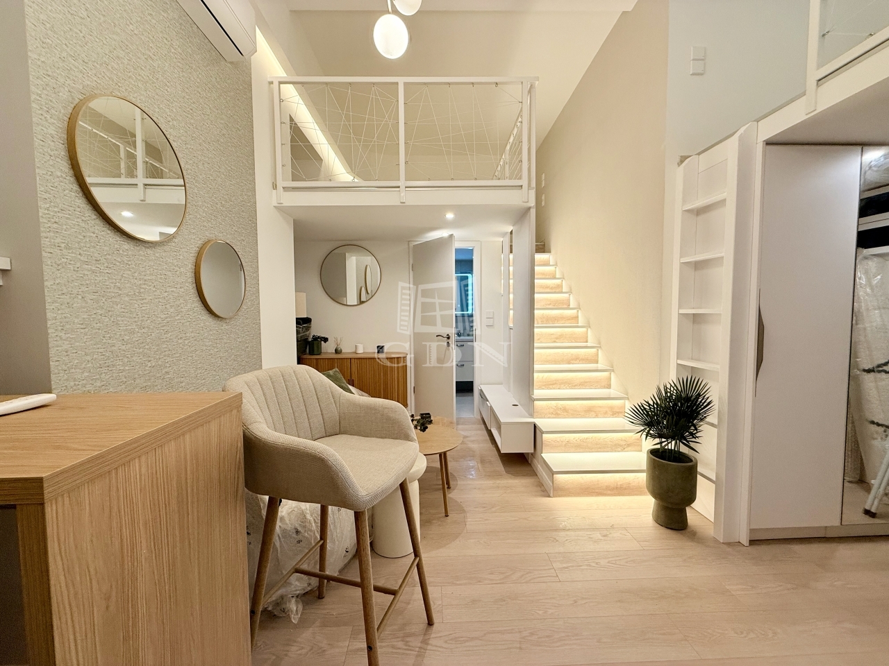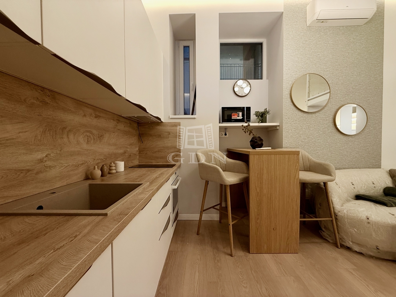 A lakás kompakt, mindennek megvan a helye. A beépített gardrób könnyíti a térhasználatot.