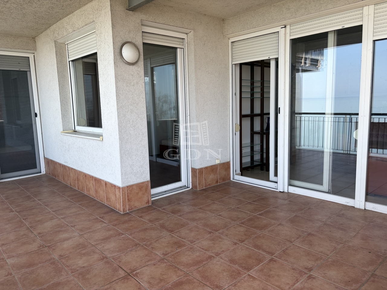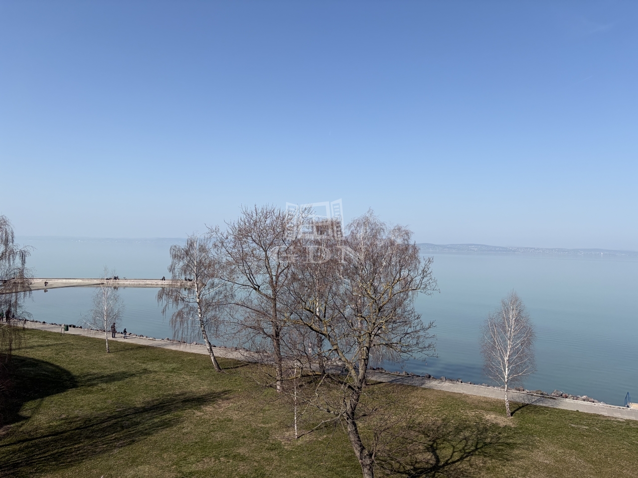 A 16 nm-es terasz fedett, örök panorámás a Balatonra.