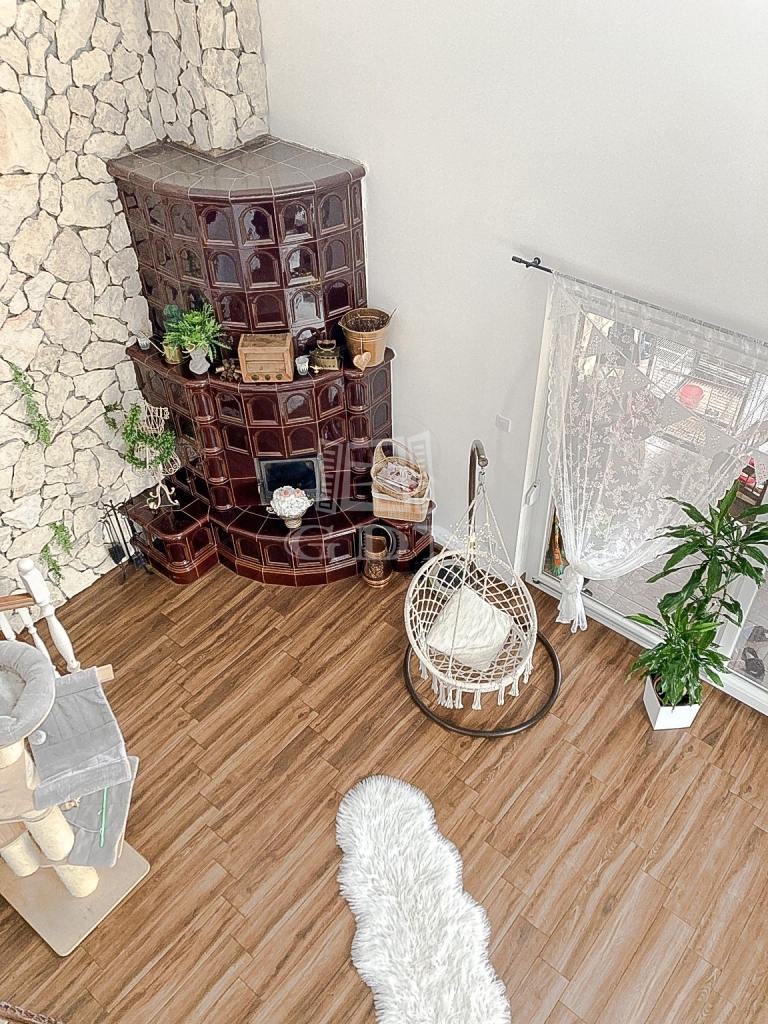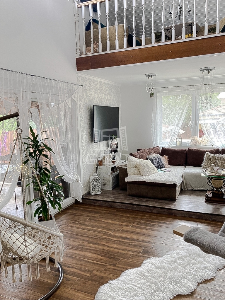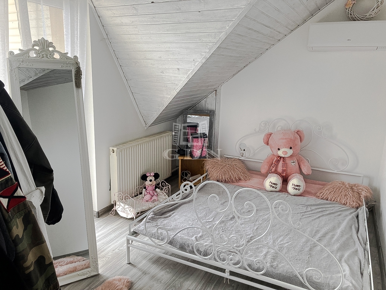 Az emeleten két hálószoba, két loggia (10 nm), fürdőszoba, gardrób és nappali (galéria részen) került kialakításra.