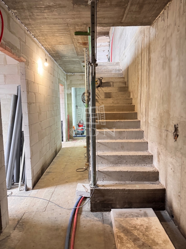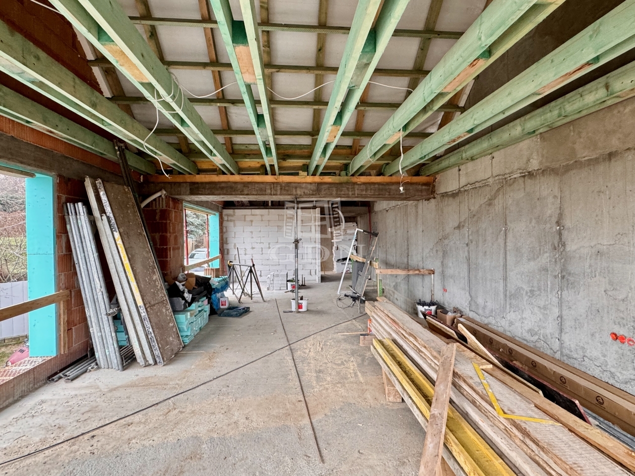 - Emeleti szint: impozáns, egy légterű nappali + étkező + konyha + kamra blokk, külön WC és előszoba