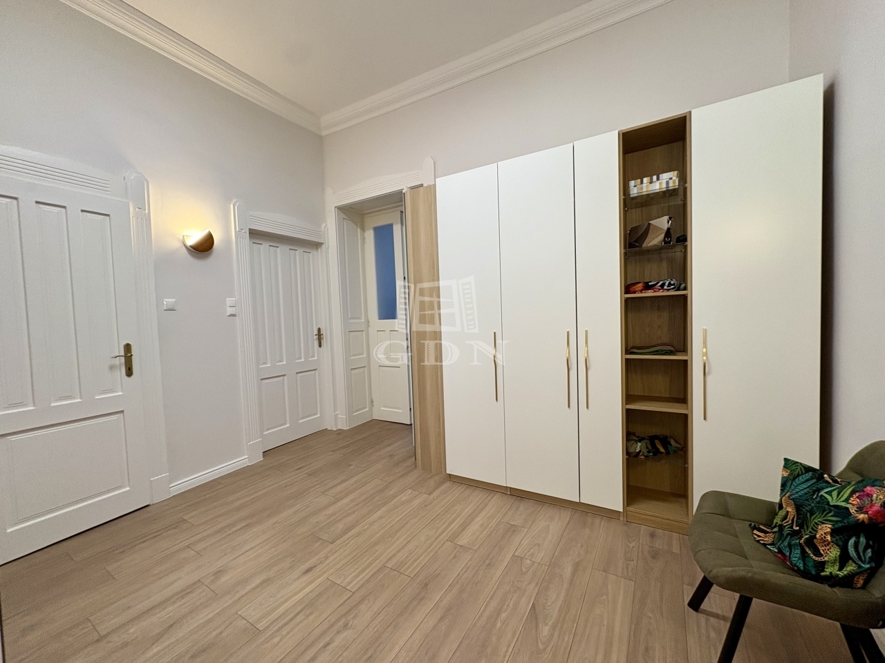 Az ingatlan praktikus kialakítású: tágas előtér, külön gardróbszoba, hálófülke, hatalmas zuhanyzós fürdőszoba, valamint külön helyiségben található bidés WC. Az ingatlan minden részlete átgondolt, kényelmes és modern életvitelt biztosít.