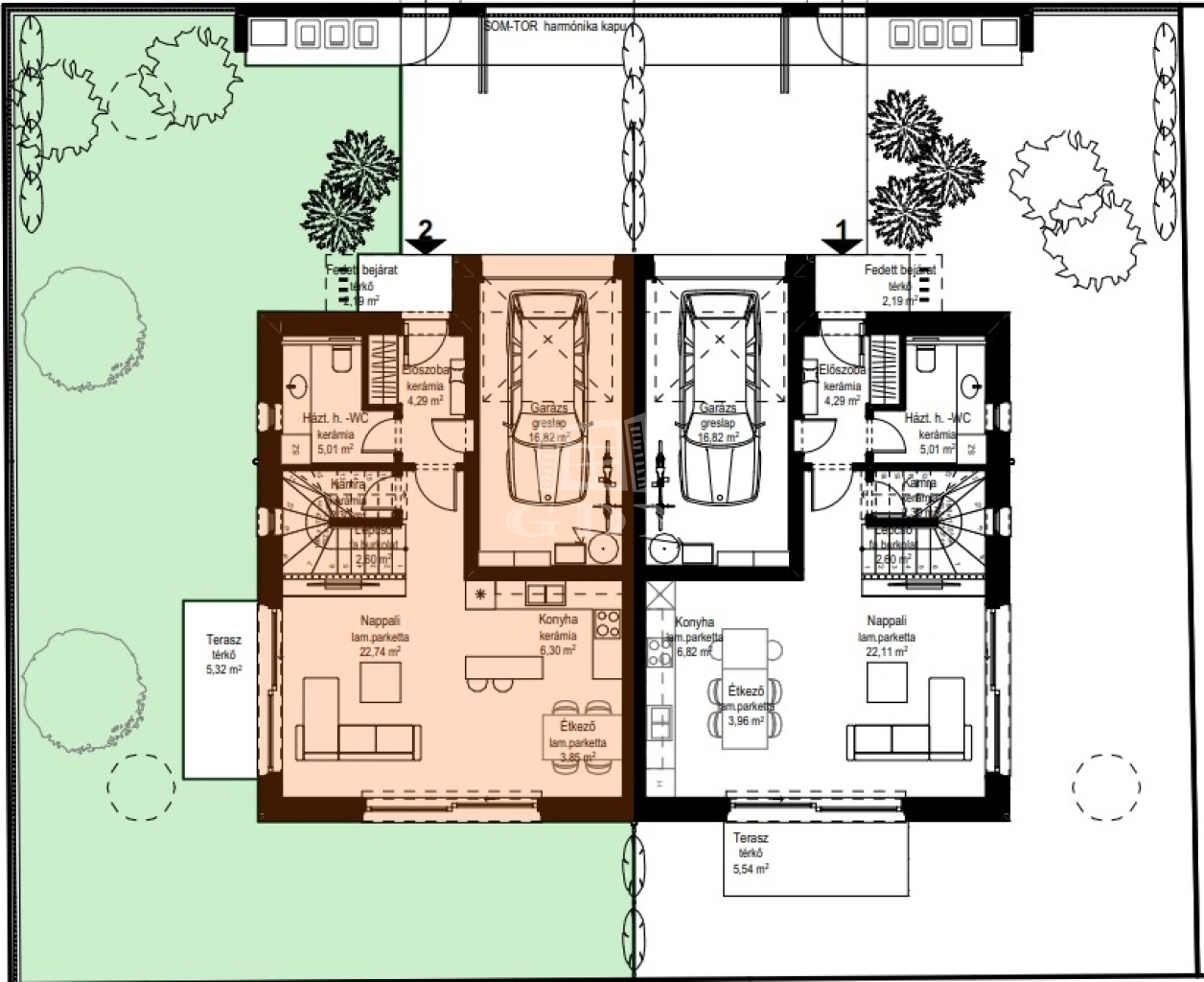 Telekméret: 231 m² saját kerttel