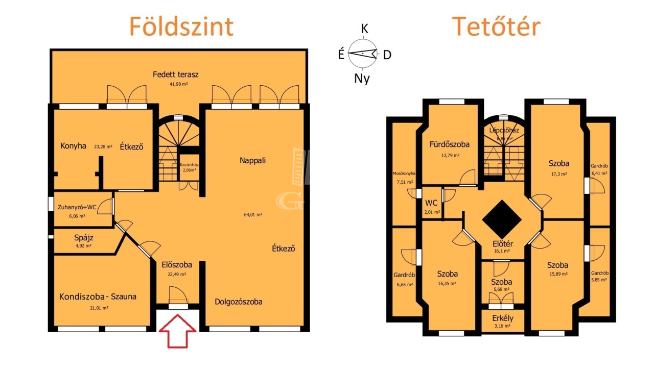 SZAUNA, KONDISZOBA, KANDALLÓ, PADLÓFŰTÉS (egész házban), KLÍMA és GARDRÓB (a szobákban), 2 fürdőszoba, 42m2-es fedett terasz.