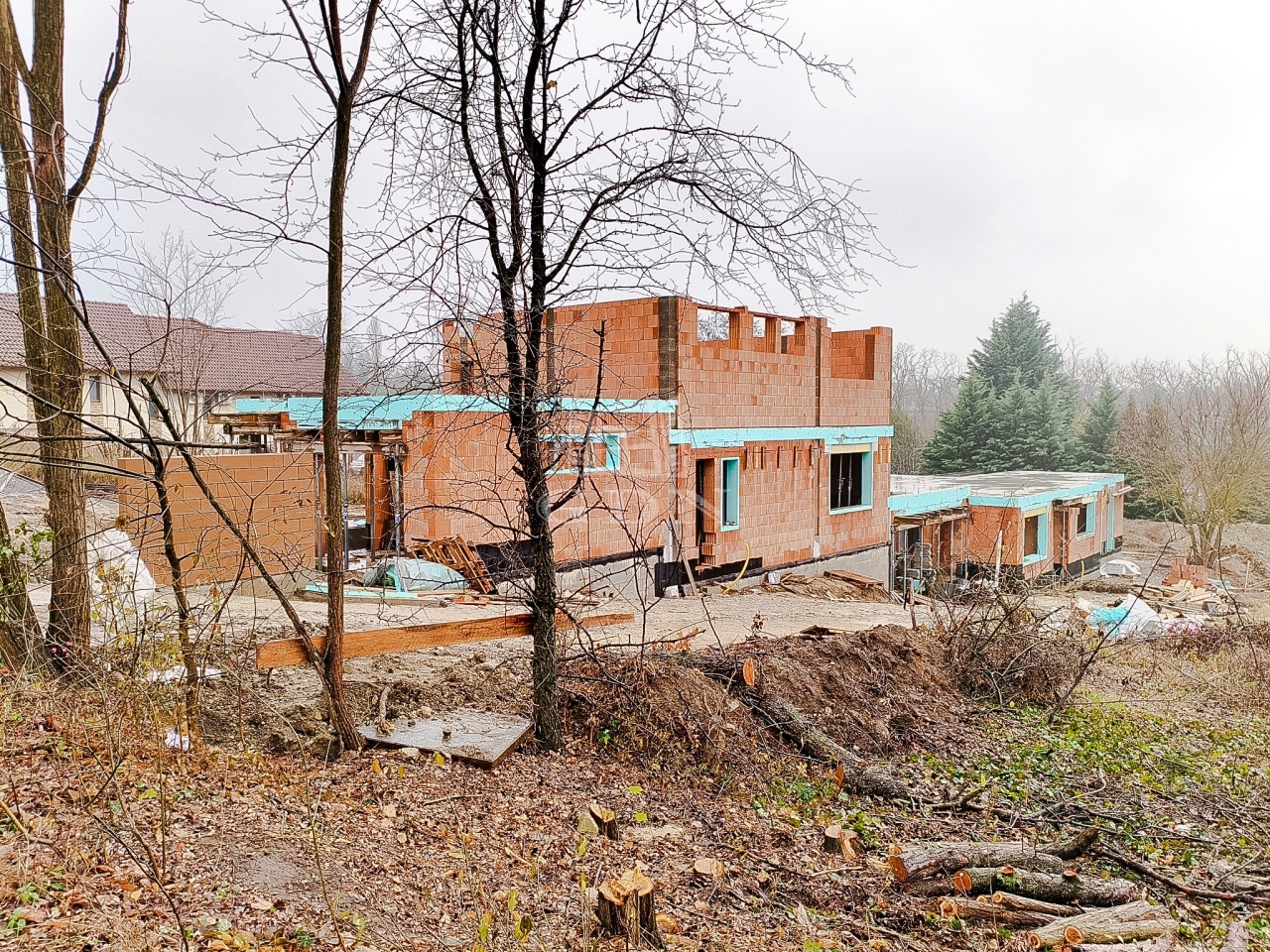 Veresegyház, Hegyek városrész csendes, kertvárosias részén, cca. 450 nm-es telek területtel, Új építésű, bruttó 181 nm-es, 4 szobás (nappali + 3 hálószoba, külön konyha, étkező), két szintes, vasbeton födémes (az emeleten is), hőszivattyús (levegő - vízes) padló fűtéssel, Dél - Keleti fekvésű, műanyag thermo dió színű (3 rétegű, 7 légkamrás) nyílászárós, szigetelt (15 cm dryvit), új építésű, a másik féltől teljesen elszaparált, garázzsal elválasztott, a másik lakóegységgel egy telken lévő családi ház (első) eladó.