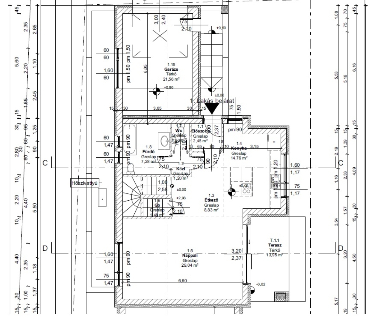 Parkolás: saját 22 nm-es garázs, elektromos kapu előkészítés.